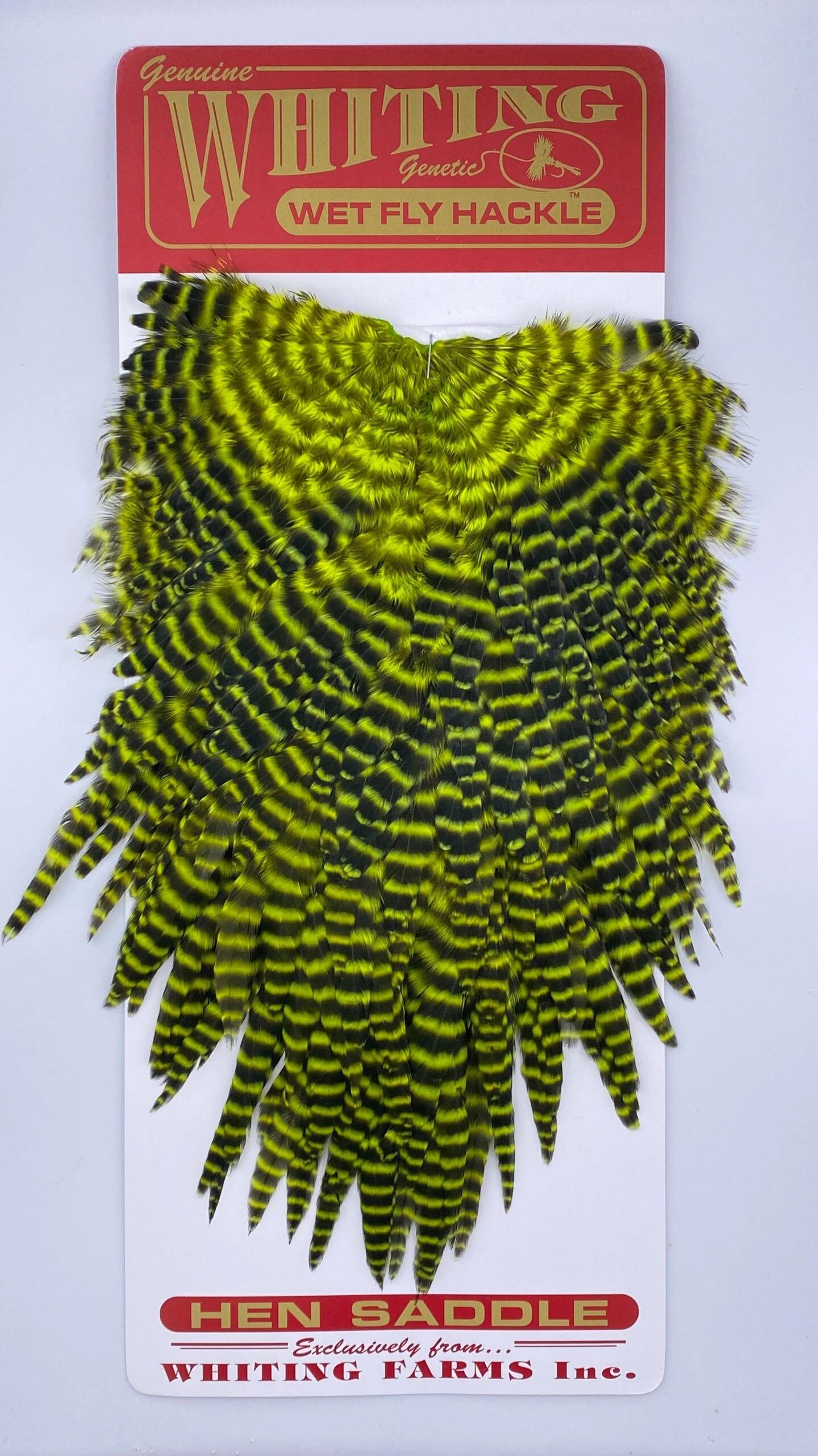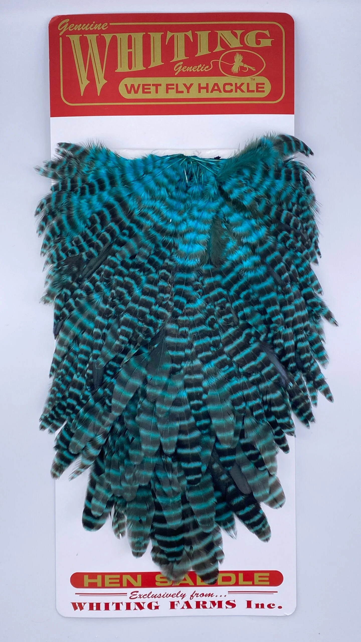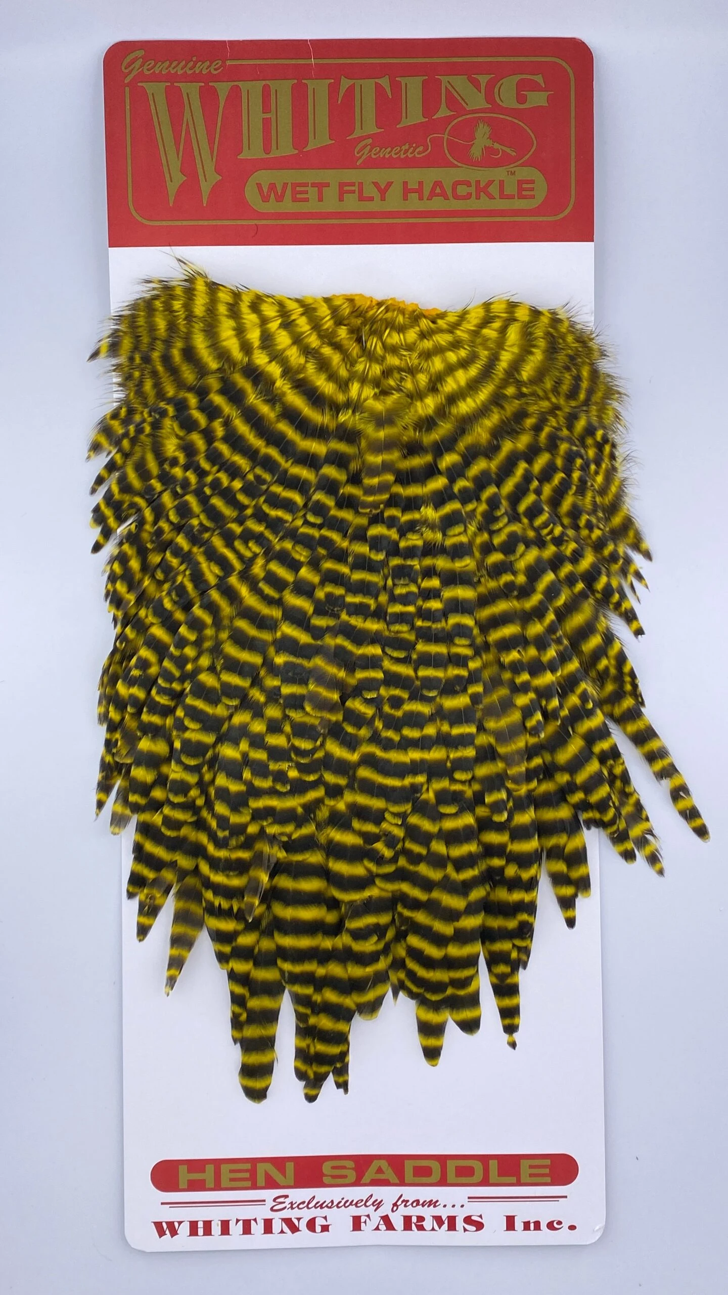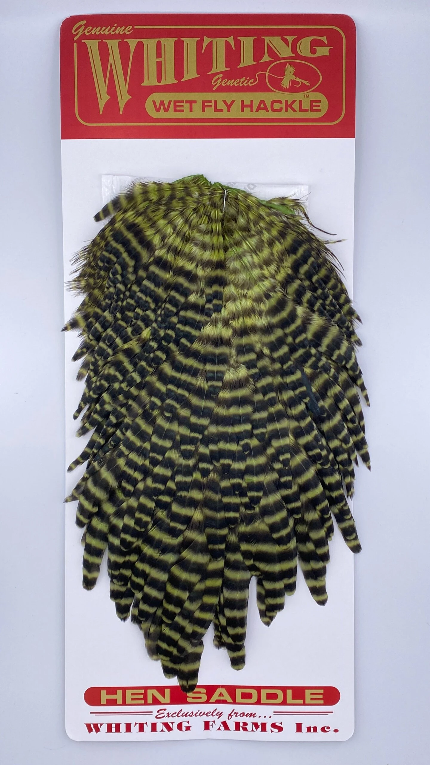 Whiting Red Label Hen Saddle. This is a great soft hackle material. The length of the overall feathers is relatively long because they are the hens from the red label line. Also good on streamers.